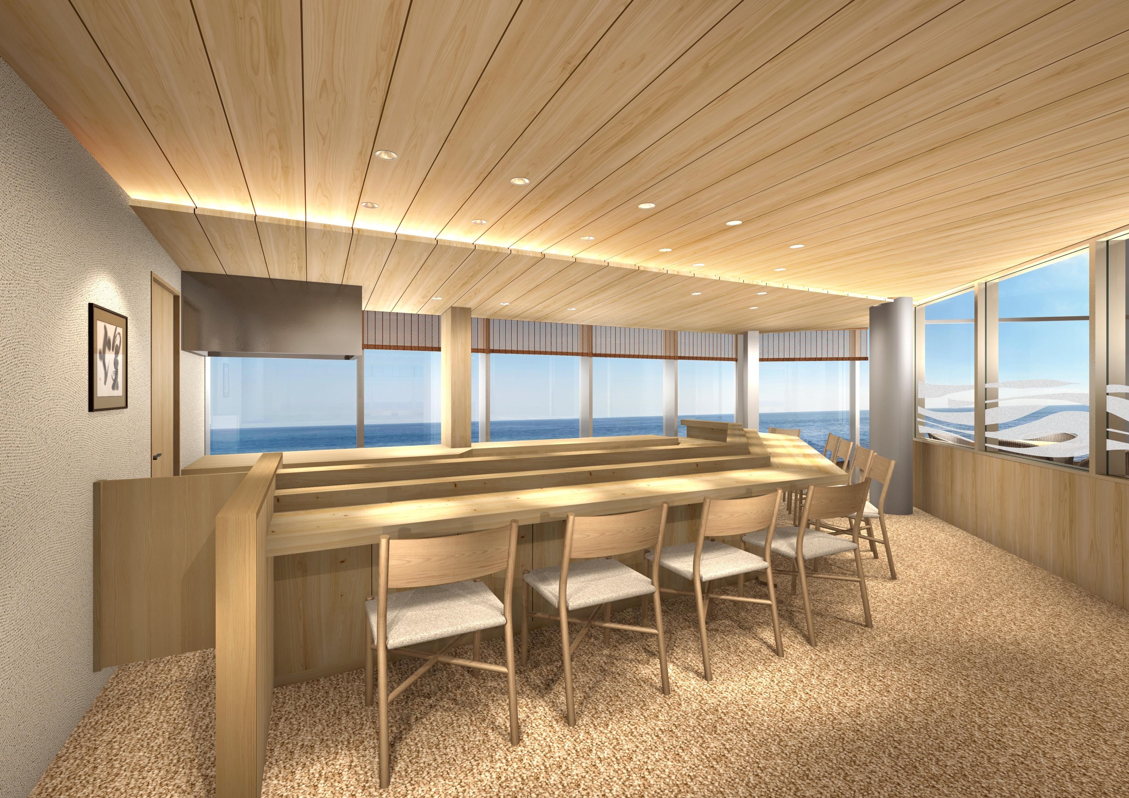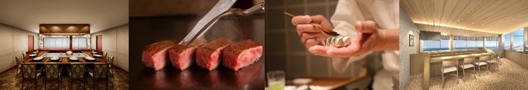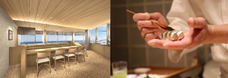 カウンター専門店エリアでは創業以来、独創的な鉄板料理と巧みな空間演出で世界中の美食家を魅了してきた「うかい亭」と、地元大阪府内約500の寿司店で構成され、伝統的な技法を習得した数多くのすし職人を擁する「大阪府鮓商生活衛生同業組合」と協業し、コース料理を提供いたします。