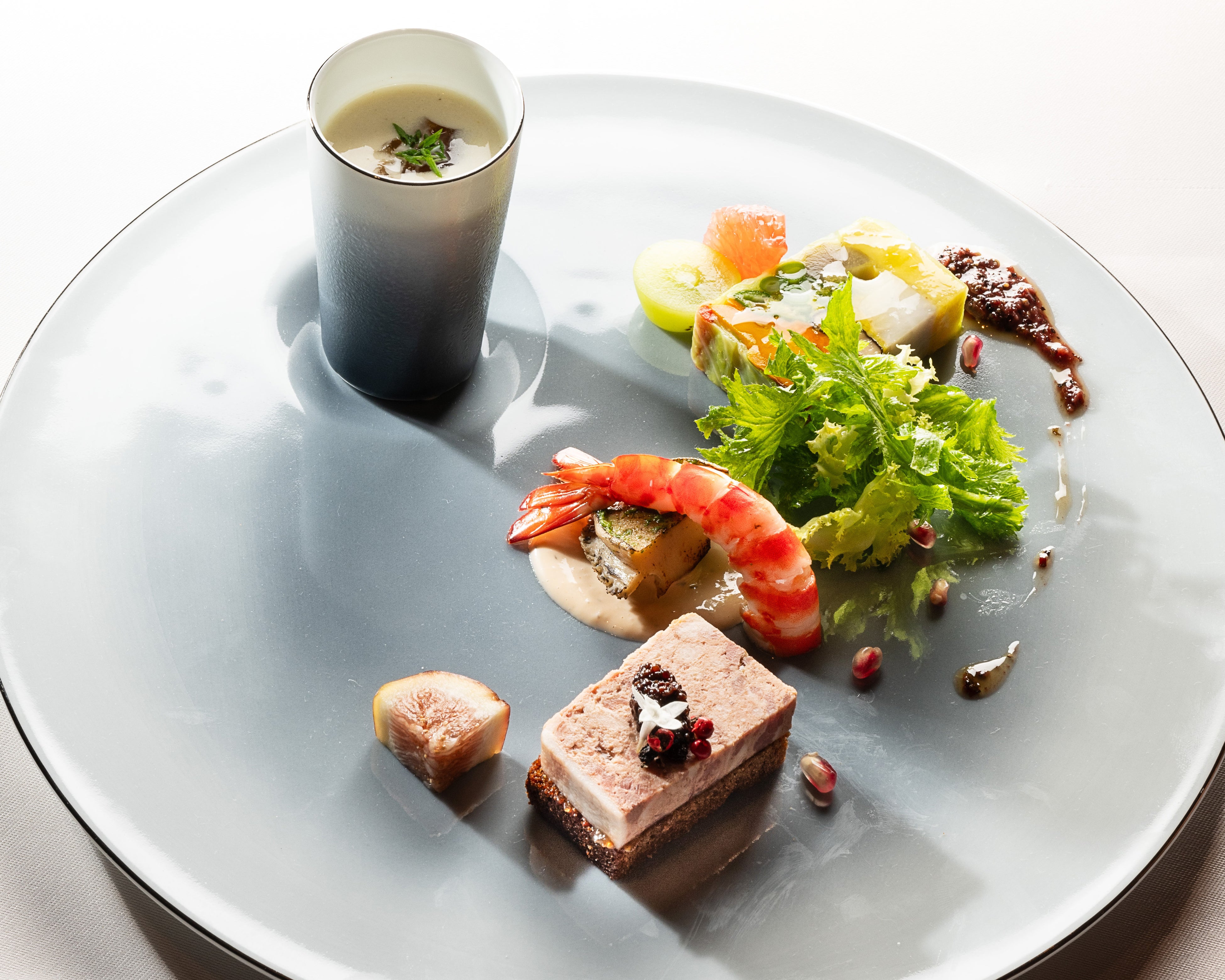 料理を手掛けるのは「うかい亭」。独創的な日本の高級鉄板料理で非日常の空間を演出いたします。長年「うかい亭」で愛されてきた定番料理をコースに交えてお届けします。料理長が厳選した黒毛和種を使用したステーキや、シェフの技が光る鉄板料理は、臨場感とともに香りや音など五感を通してお楽しみいただけます。