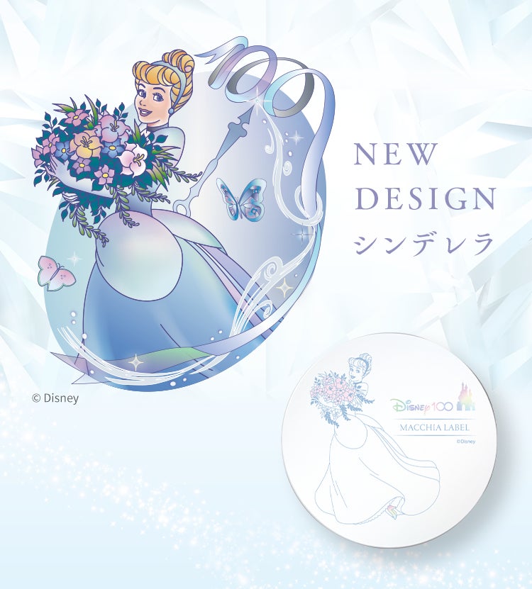 今年、マキアレイベルは創業25周年という節目を迎えます。そんな記念すべき1年を祝して、マキアレイベルからディズニー100テーマのシンデレラをデザインした「ダイヤモンドビジュパウダーキャップ ディズニー限定デザイン」が新登場します。ブーケを抱えたシンデレラの可愛らしいデザインで持っているだけで幸せな気分に。シンデレラの靴には、虹色に輝くホログラムが施され見る角度によってキラキラと輝き、使うたびに物語の心ときめく瞬間を思い出させてくれます。