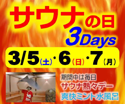 「サウナの日3Days」開催日程:2022年3月5日(土)~3月7日(月)