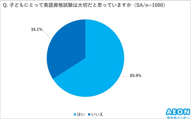 (1)65.9%の保護者が、お子様にとって英語資格取得は大切だと考えている。