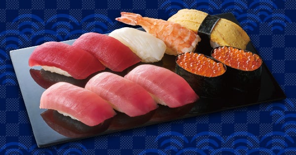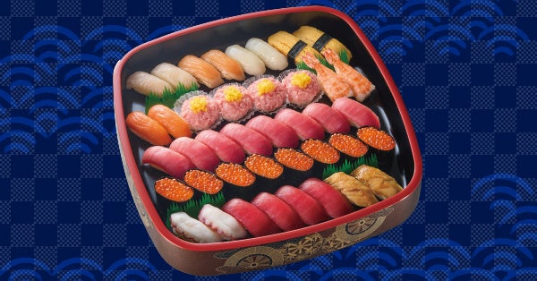 「南鮪中とろ」、「いくら軍艦」、「たっぷりとろたくカップ」をメインに、「まぐろ」など定番ネタを盛り込んだ40貫の大皿メニューです。