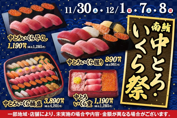 11月30日(土)~小僧寿しでは、「南鮪中とろ」と「いくら」をメインに冬にぴったりの贅沢フェア『南鮪中とろ・いくら祭』を開催します!
