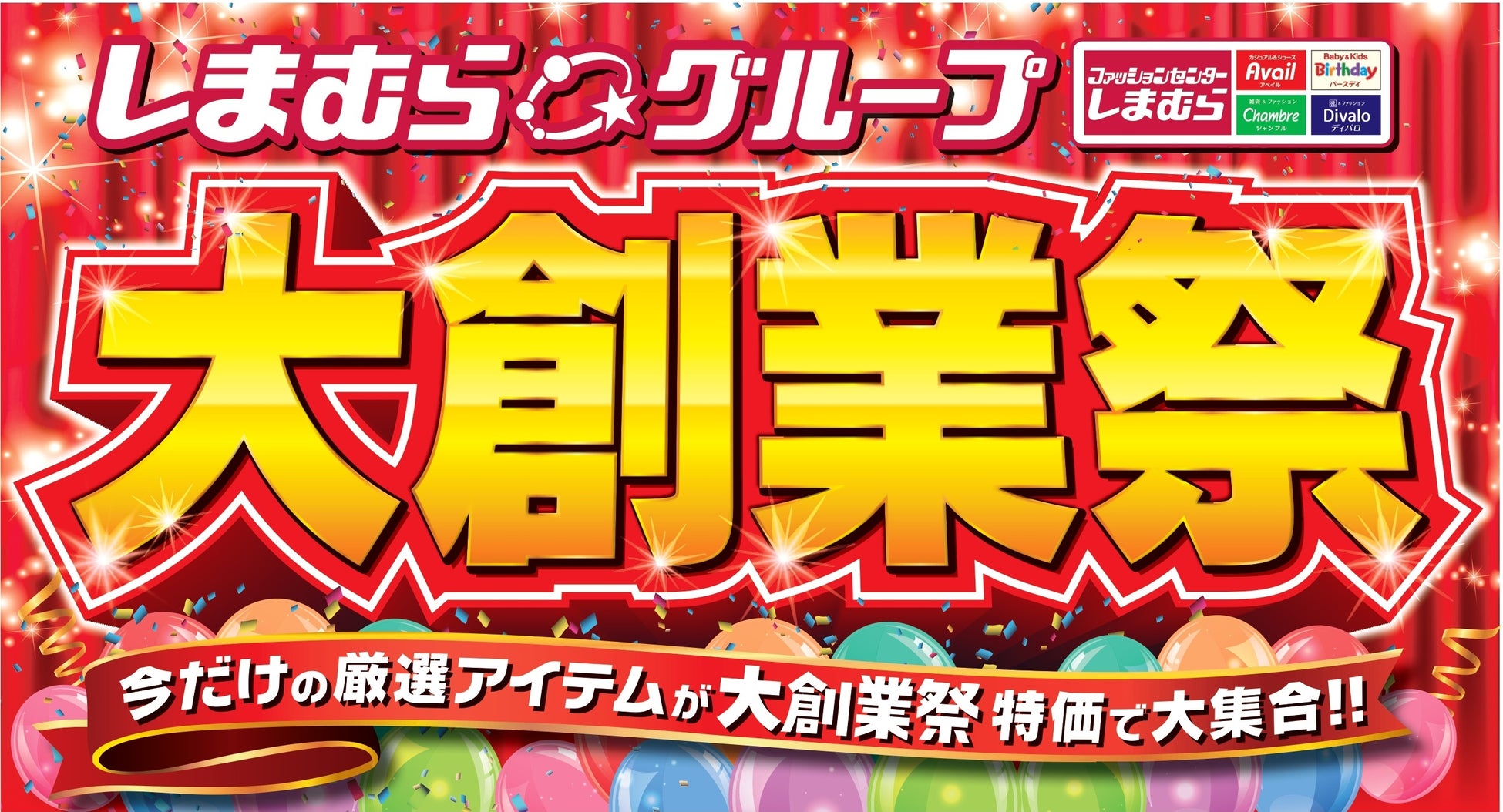 株式会社しまむら(本社所在地:埼玉県さいたま市大宮区北袋町1-602-1、代表取締役:高橋 維一郎)は、 4月23日(水)より、しまむらグループ各店舗で『大創業祭』を開催いたします。皆様のご来店を心よりお待ちしております。