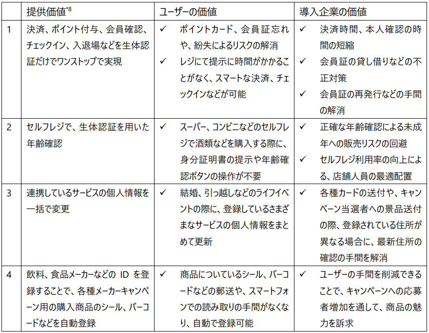 *8 提供価値1、2は生体認証統合基盤サービスと連携することによって実現。