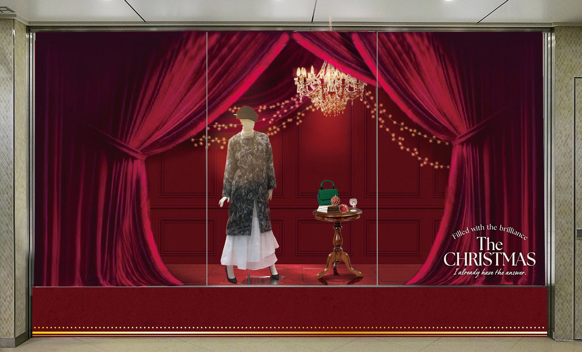 たっぷりと豊かなドレープカーテンとシャンデリアの光。そしてコンコースに流れるジャズ音楽。思わず大人も見惚れる上質なショーウィンドウや装飾で皆様をお迎えします。