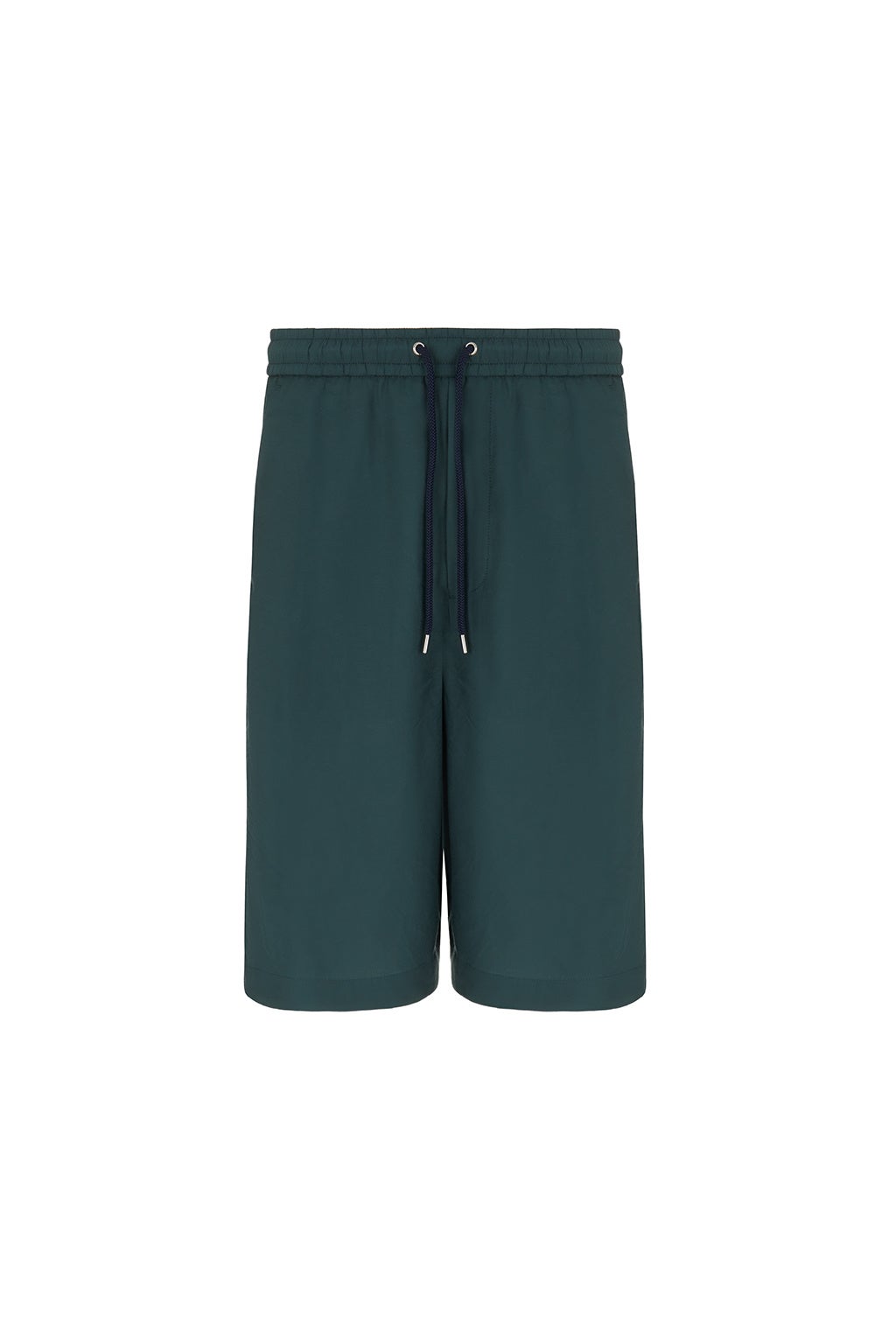 アイテム全面にブルーとグリーンでブランド名を描くブルゾンとパンツは、リサイクルキュプラを使用したアイテム。ブルーとグリーンでブランド名をアイテムの全面に描くというユニークなデザインでファッション性の高いアイテムながら、キュプラ特有の滑らかな手触り、流れ落ちるようなシルエットがアイテム全体を品よくまとめています。