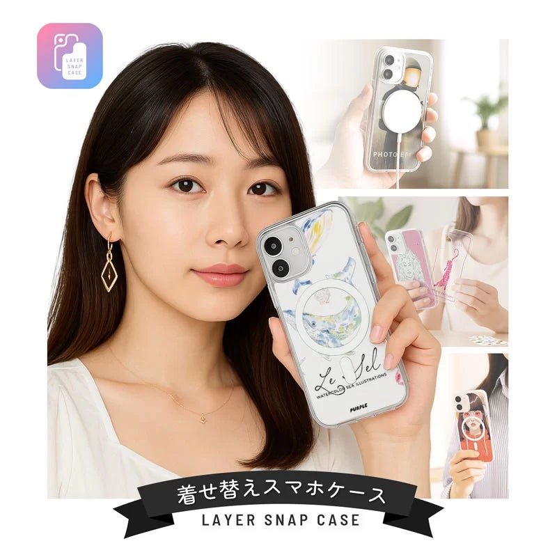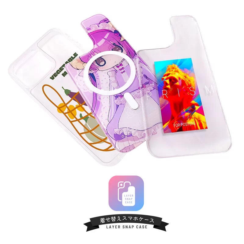 ケース本体にデザインパーツを重ねて使う新発想のレイヤー構造。気分や季節、コーデに合わせて着せ替えられるから、毎日がワクワク。推し活をもっと楽しみたい方にも最適です。