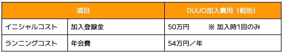 ・DUUO 加入1年目にかかる費用:104万円(税別)