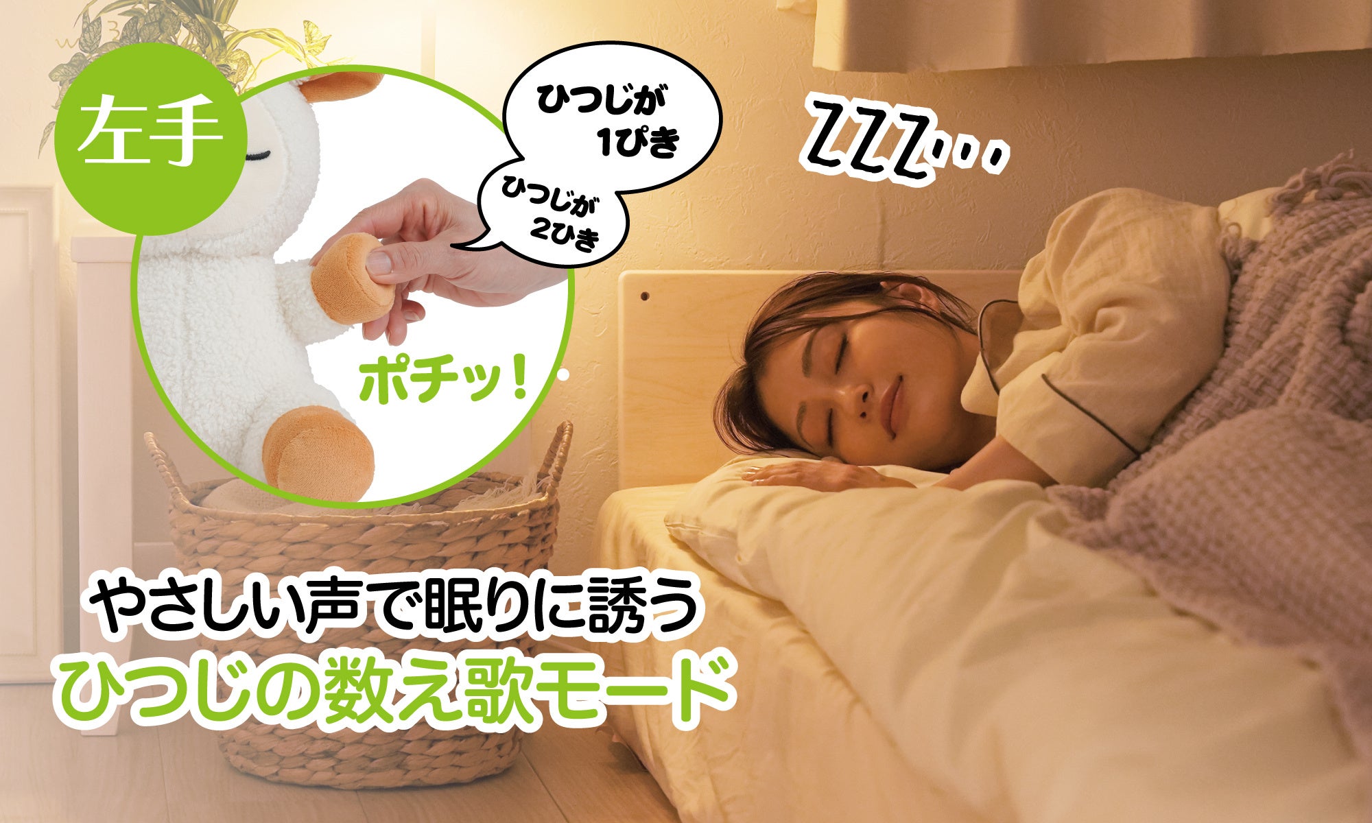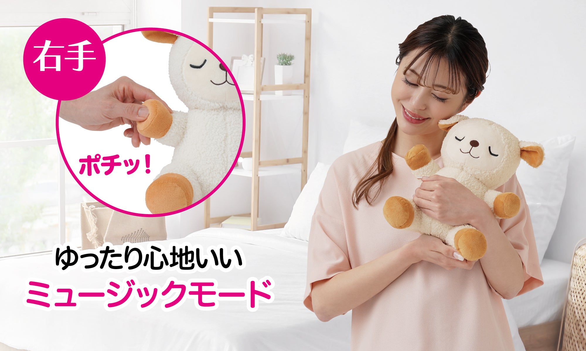 簡単操作!ポチッ!と押すだけで癒しの音楽&ヒツジの数え歌が眠りを誘う♪