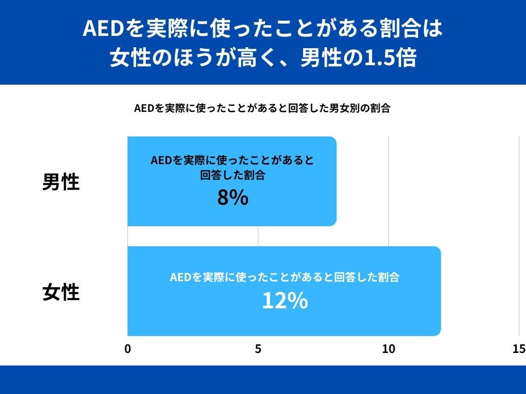 【AEDを実際に使ったことがある割合は女性のほうが高く、男性の1.5倍】