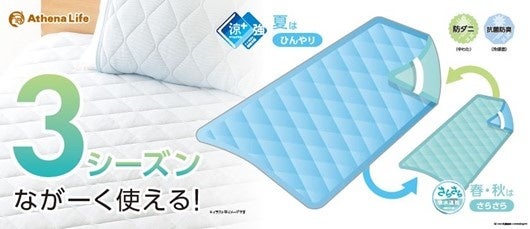 夏はひんやり、春秋はさらさら。季節に合わせて使い分けできる冷感寝具 コメリオリジナルブランド 「アテーナライフ」より「涼+シリーズ 強冷感 3シーズン使えるリバーシブル敷パッド」が新登場!