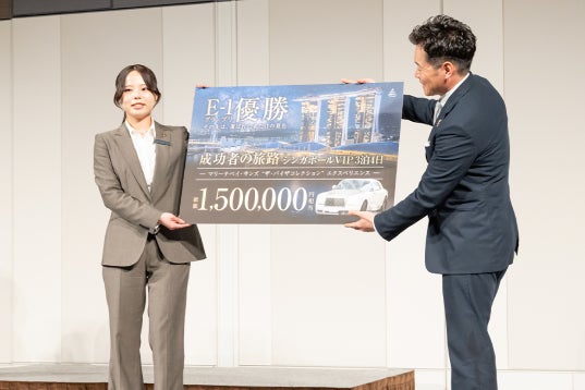 今年のE-1グランプリでは、過去最高に豪華な優勝景品が用意されました。その内容は、ビジネスクラスでのフライト、ロールスロイスでの送迎、マリーナ・ベイ・サンズのスイートルームへの宿泊を含む「総額150万円相当のシンガポール3泊4日VIP研修旅行」です。この研修旅行を通して経営者が体験するような環境に触れ、経営者としての視座を持ってほしいという会社からのメッセージが込められています。