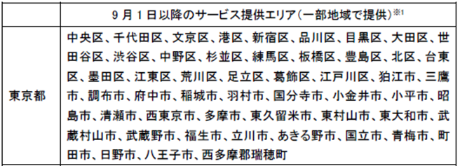 仙台、札幌等の政令指定都市をはじめとした今後のエリア拡大については、スケジュールが確定次第、お知らせいたします。