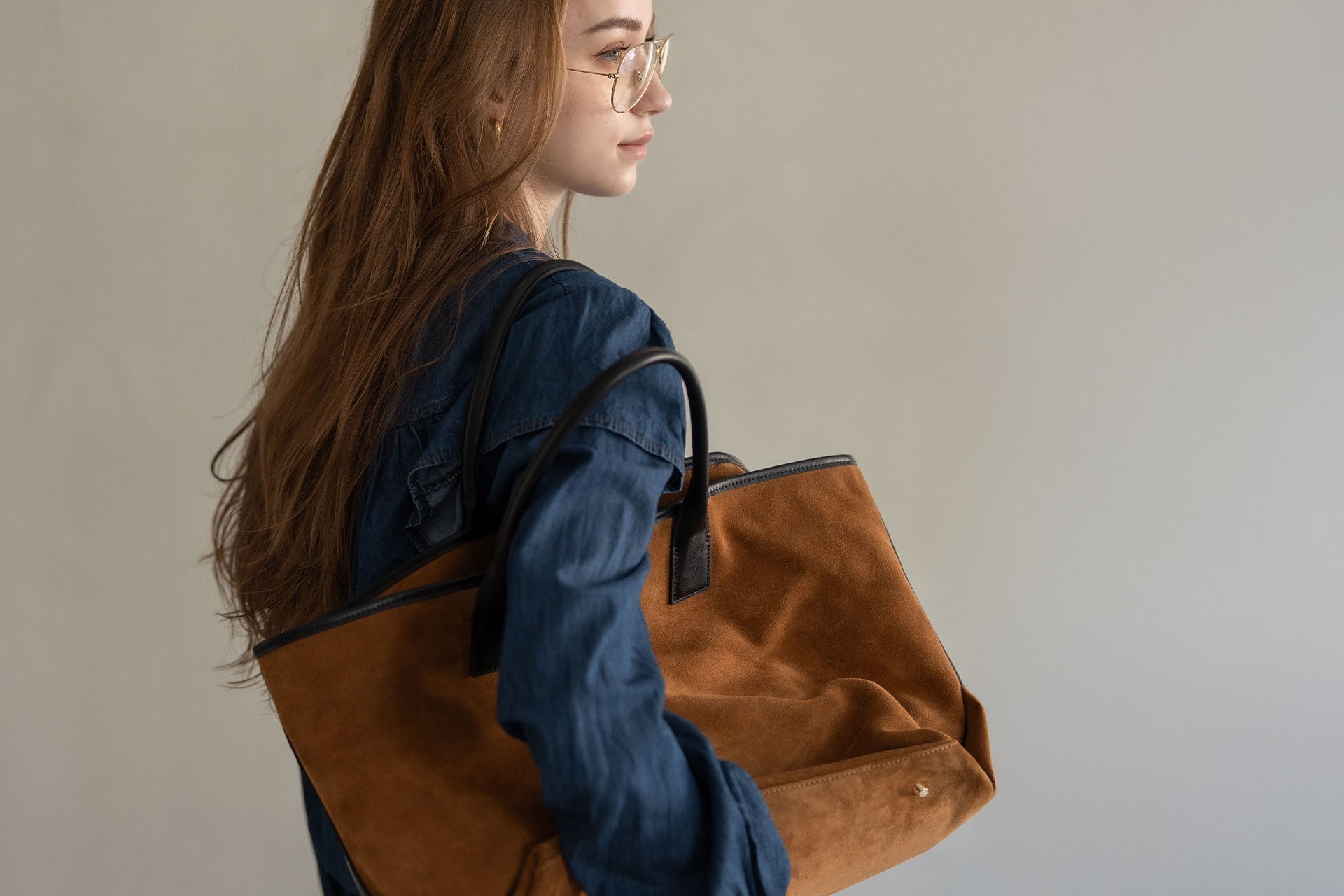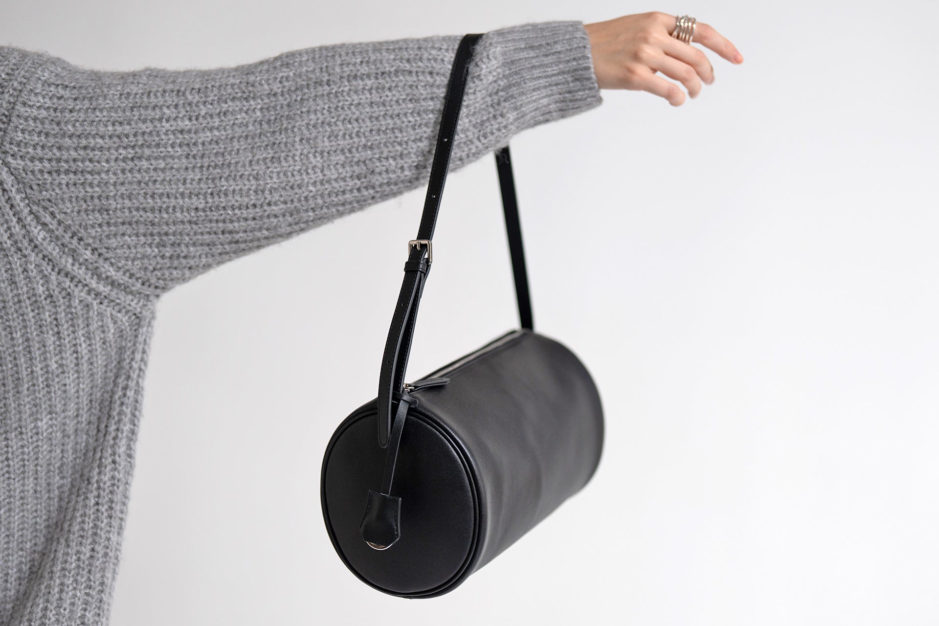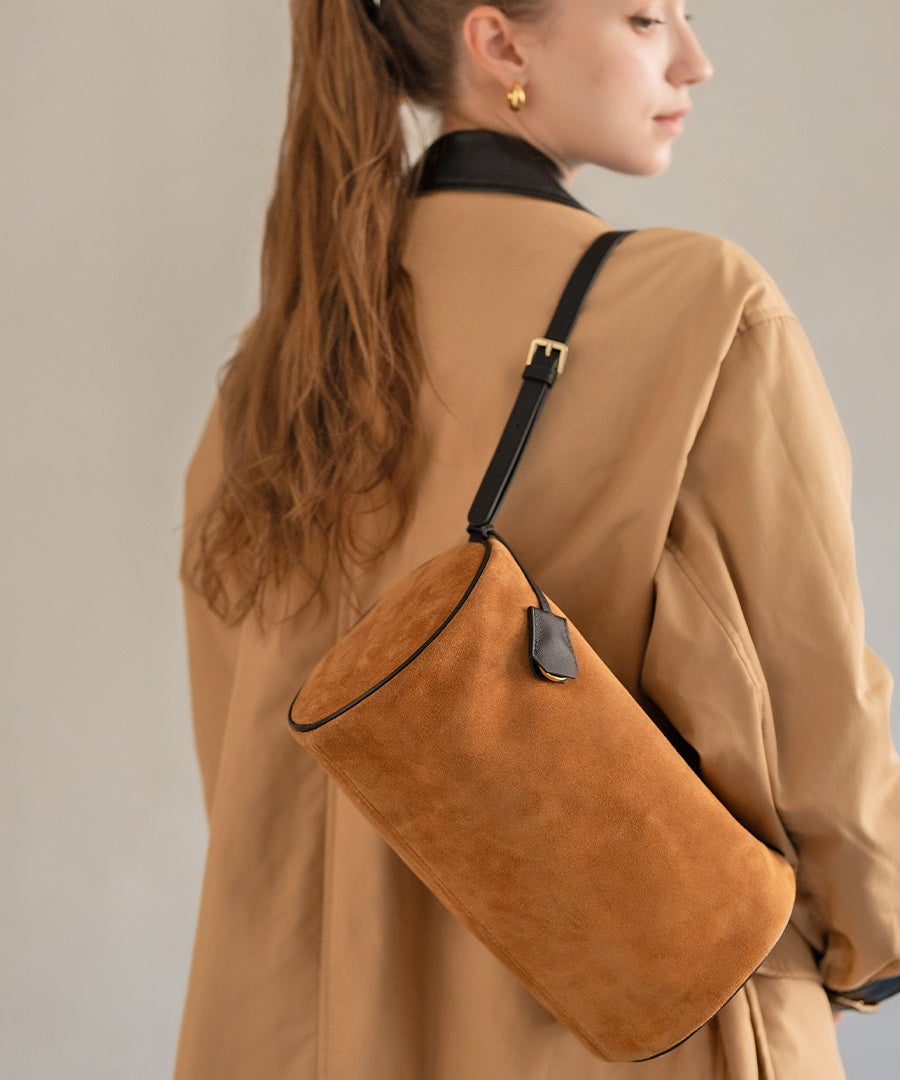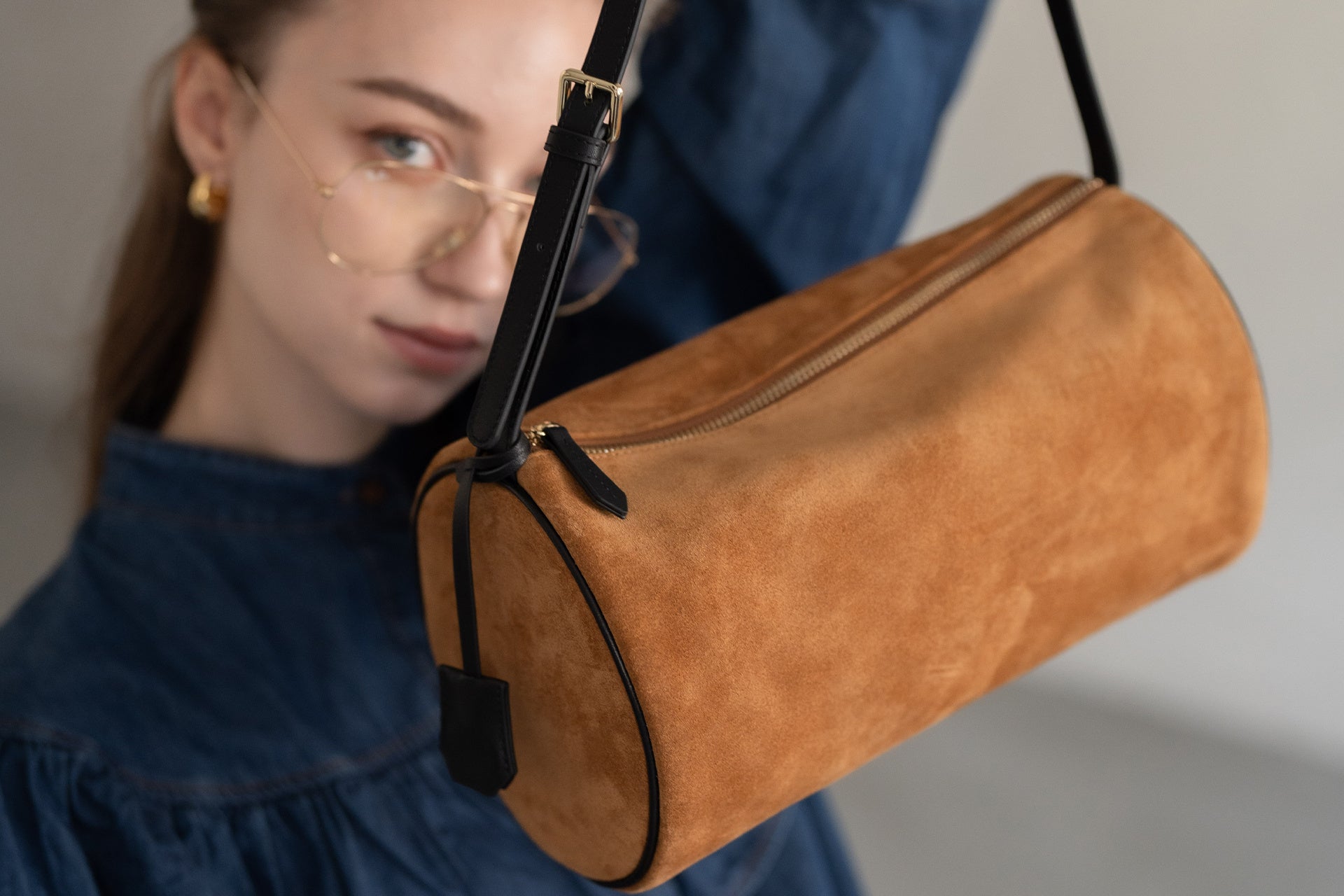 しなやかで上質な本スエード/本革を使用したドラム型バッグ