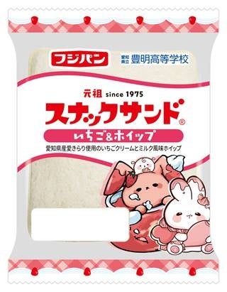 フジパン株式会社(愛知県名古屋市)は、豊明市観光大臣である豊明高等学校のイラストレーション部がプロデュースした「スナックサンド いちご&ホイップ」を中部エリア限定で発売いたします。