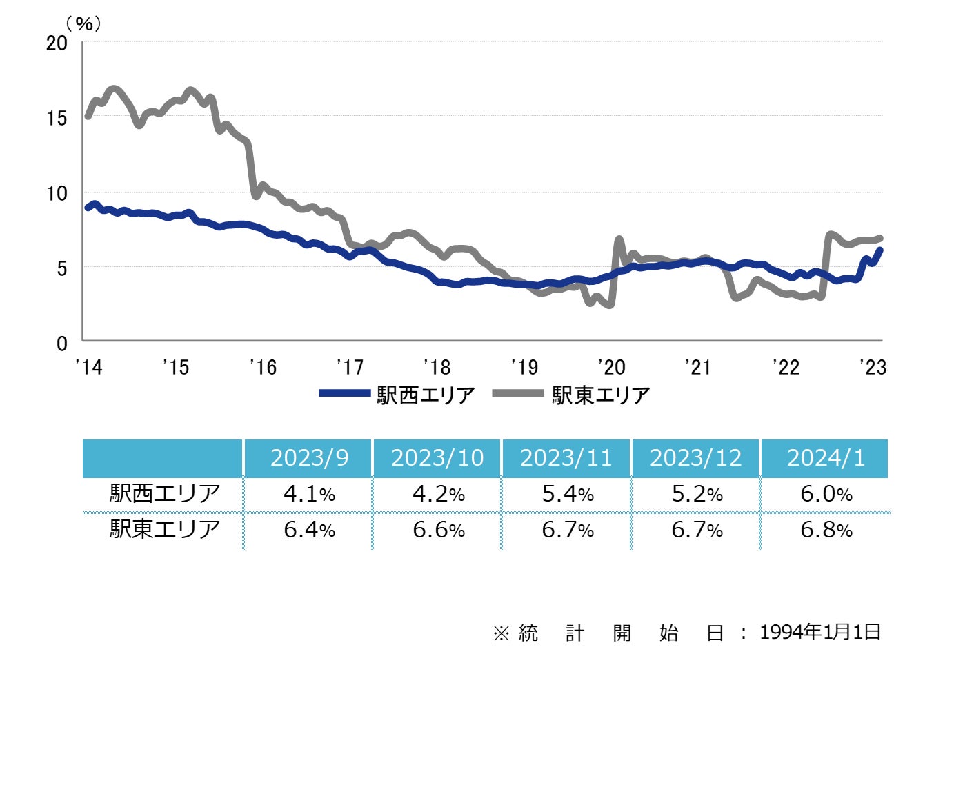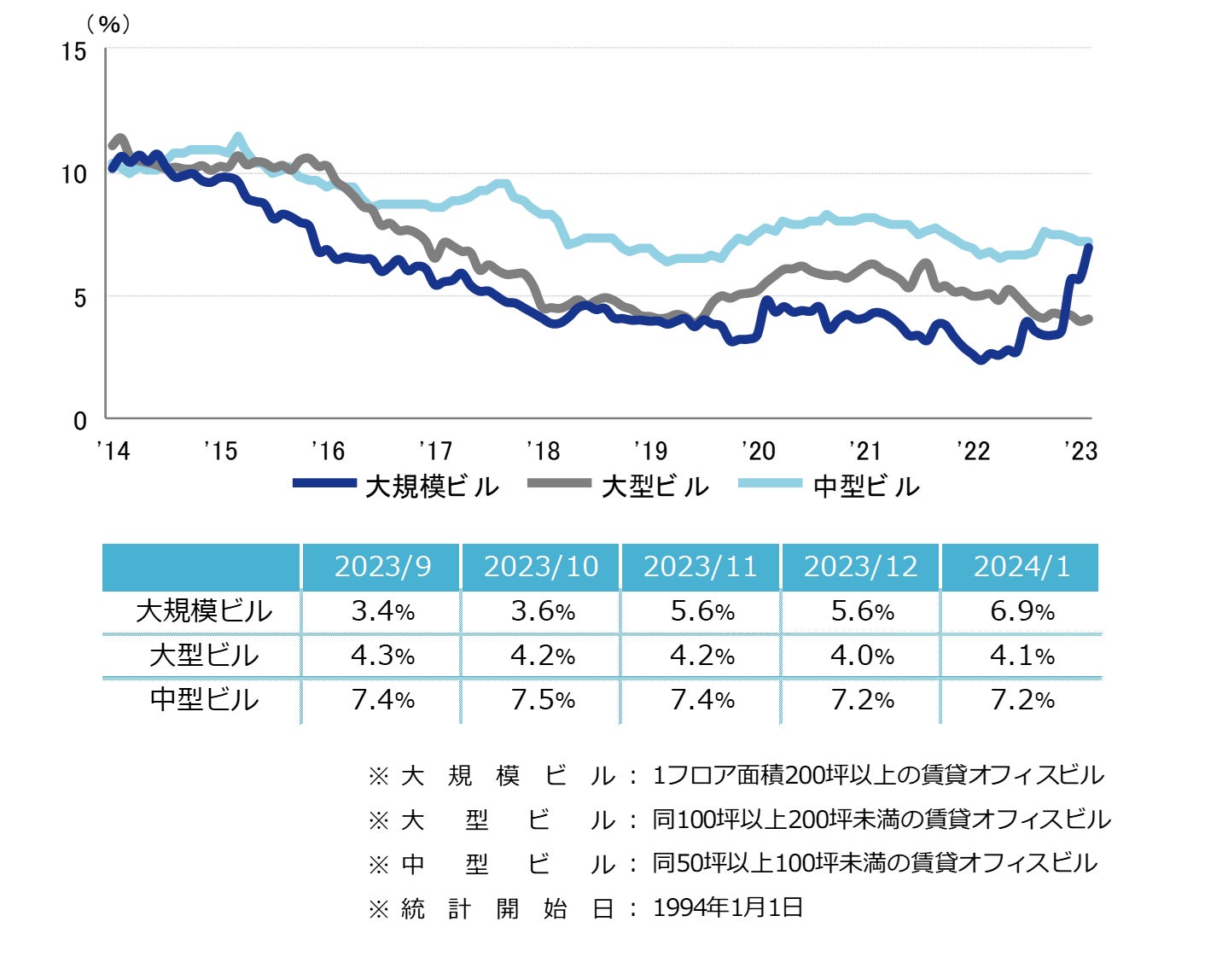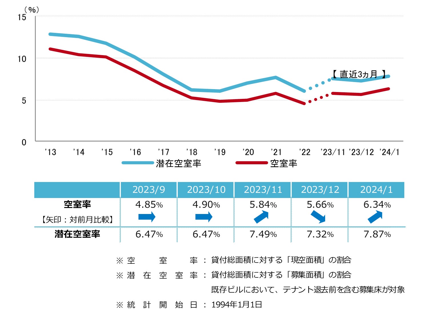 空室率 前月から大幅な上昇 「大規模」が前月比プラス1.3ポイント