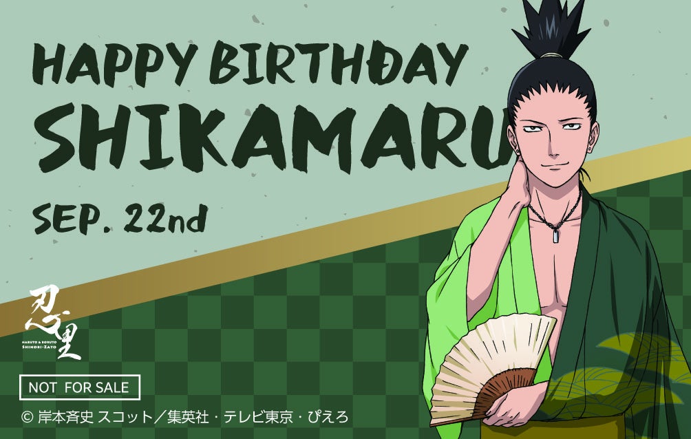 本イベントでは、これまでに忍里でイベントを行ってきたキャラクターたちの誕生日をお祝いする、忍里オリジナルのバースデーカードをご用意いたします。9月は「はたけカカシ」、「奈良シカマル」、「山中いの」、「奈良シカダイ」をお祝いします!