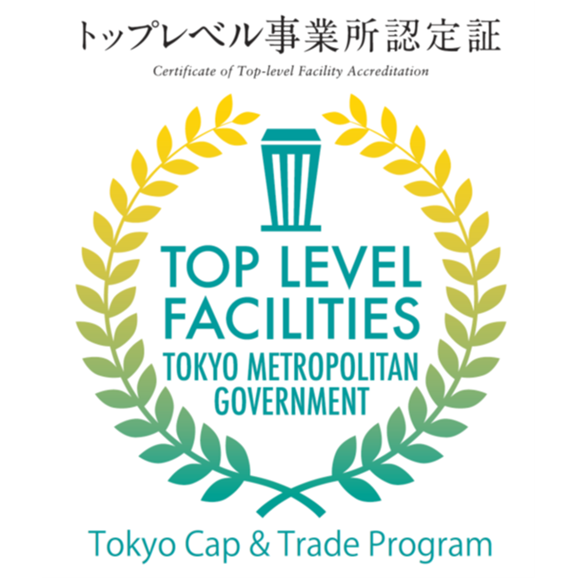 トップレベル事業所(優良特定地球温暖化対策事業所)認定は、東京都環境確保条例に基づき、地球温暖化対策への取り組み内容が特に優れた大規模事業所(エネルギー使用量の原油換算値1,500kL以上)を対象に、CO2 排出量の削減義務率を緩和する制度です。トップレベル認定では2分の1、準トップレベル認定で4分の3に事業所の削減義務率が緩和されます。