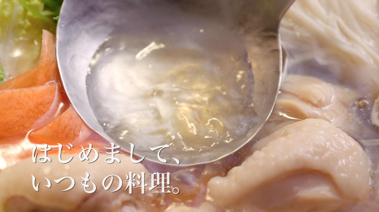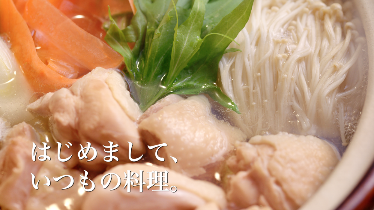 ヤマキアンバサダーの山崎育三郎さんを起用。「はじめまして、いつもの料理。」をテーマに、商品を使った秋冬のメニューを山崎さんが調理し堪能します。CMを通して、『ヤマキ割烹白だし®』を使うと、だしが効いて料理の色がきれいに仕上がるという商品の特長を訴求します。