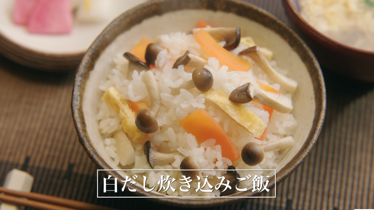 動画URL :感動のヒミツ・白だし炊き込みご飯 15秒