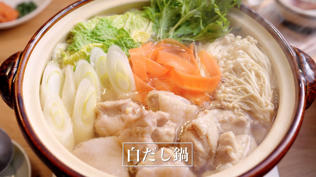 WEBCMに登場するメニュー ※白だし炊き込みご飯・白だし鍋はTV CMと同じです。