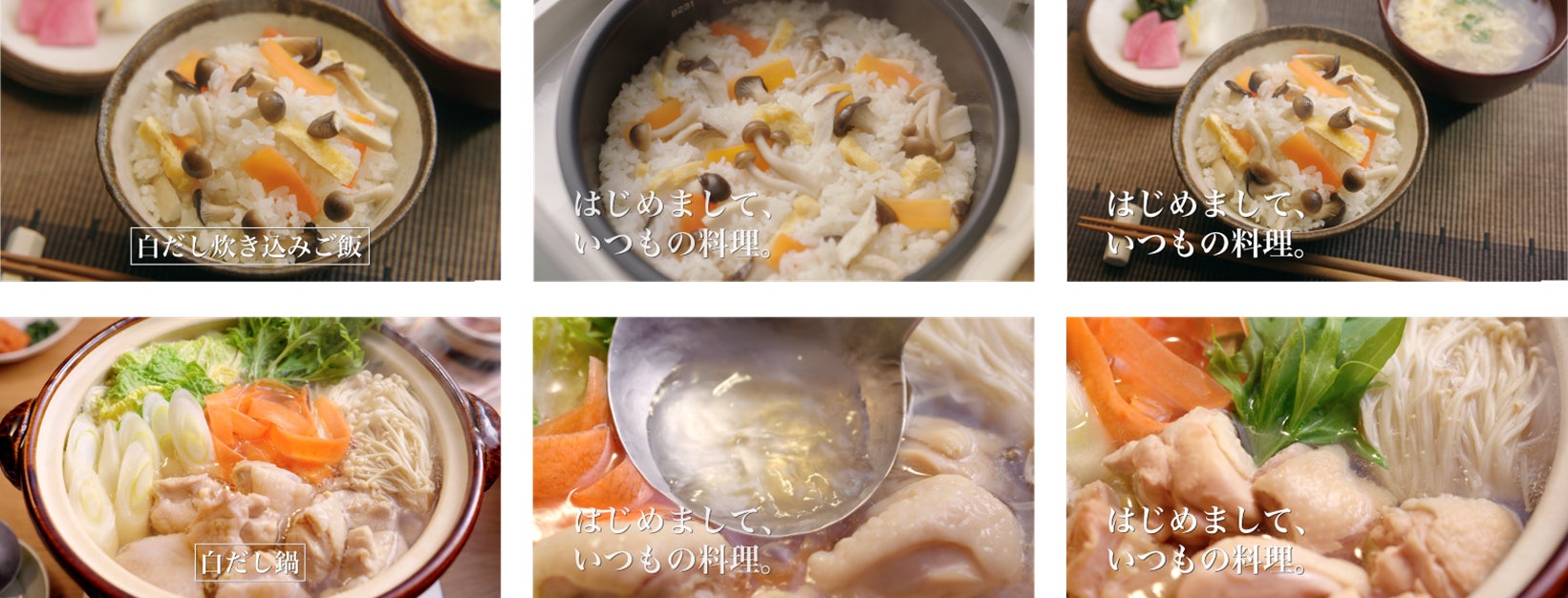※「感動のヒミツ・白だし炊き込みご飯」「感動のヒミツ・白だし鍋」はTV CMと同じです。
