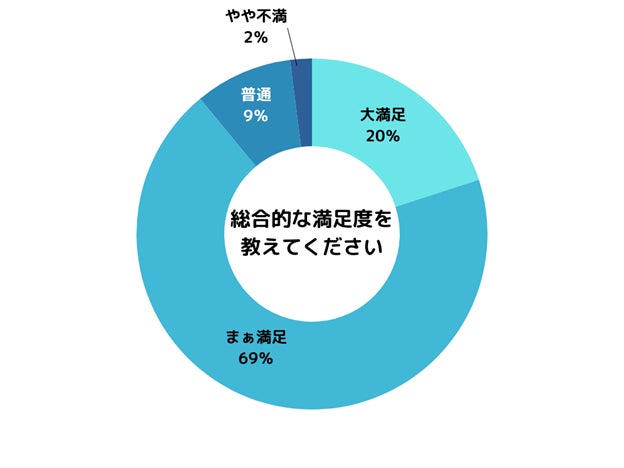 現在動画配信サービスを利用している人の総合的な満足度をみると、大満足と満足で約9割を占めました。