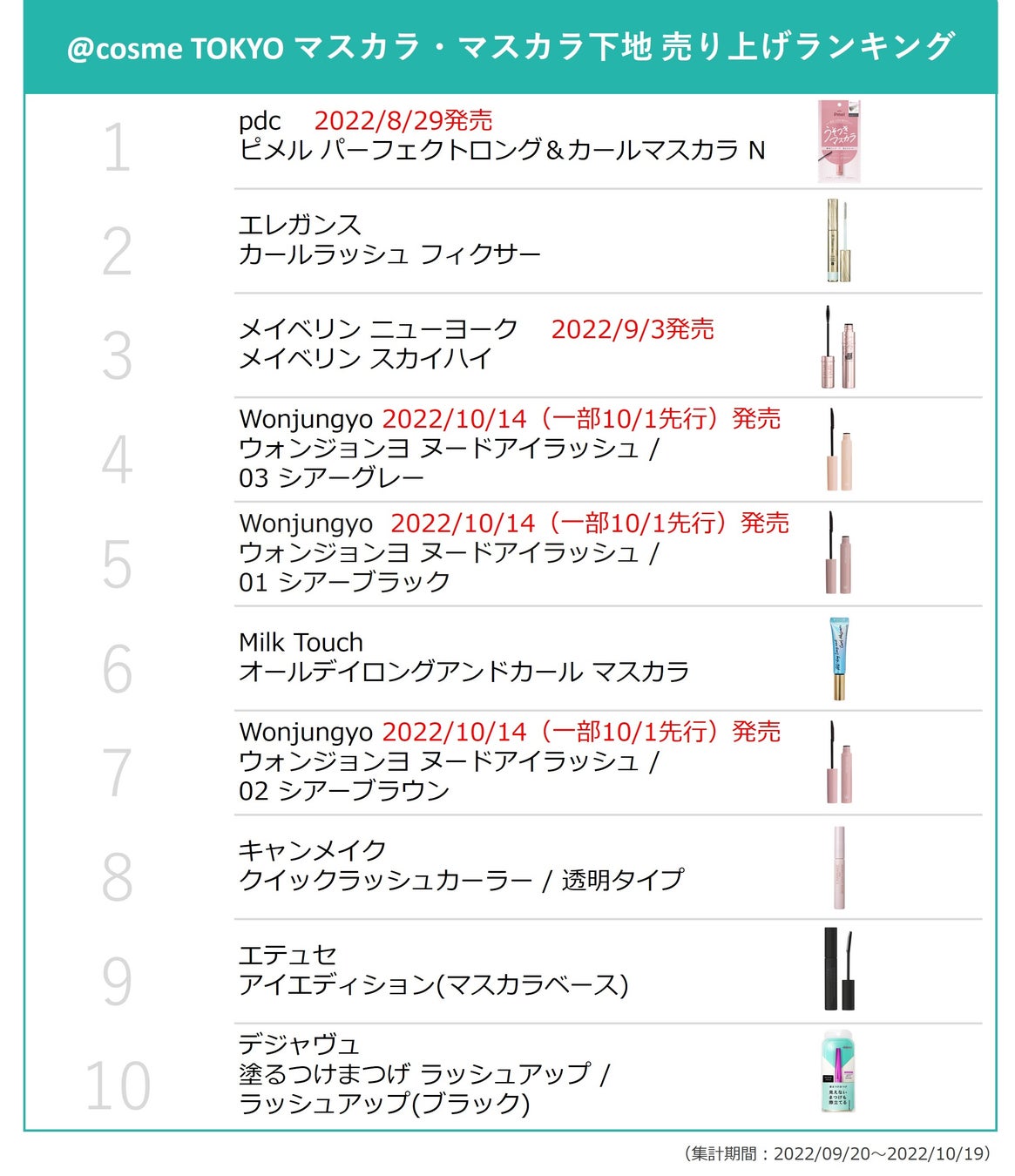 2.@cosme TOKYO マスカラ・マスカラ下地 売り上げランキング(集計期間:2022/09/20~2022/10/19)