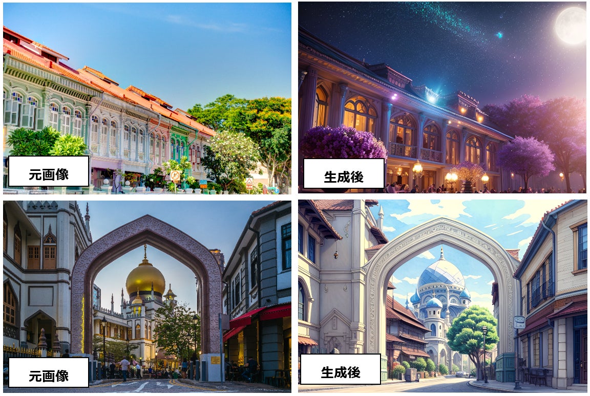AI シーン機能を使えば、見慣れた風景や街並み、住み慣れた室内の写真を、全く別の見た目に変えることができます。 驚くほどリアルな風景から、幻想的な別世界のような見た目など、さまざまなスタイルから選択できます。 カスタム変更にも対応し、文字で説明するだけで、思い描くシーンに変身させることができます。