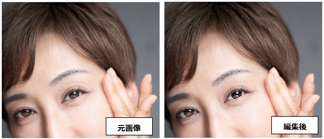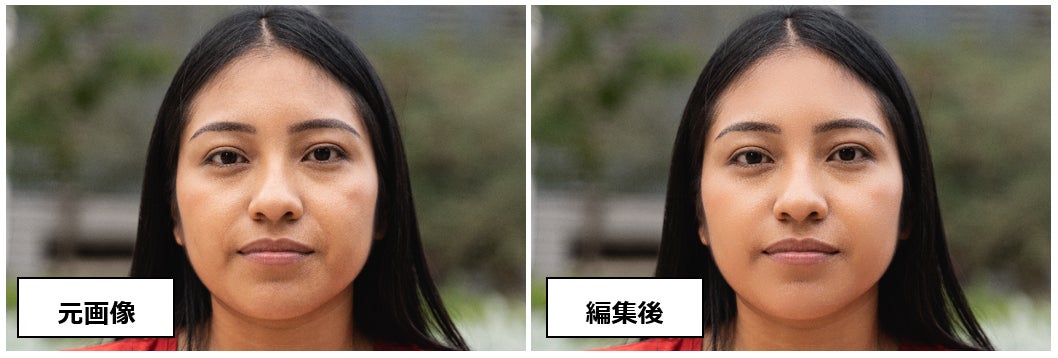 明るく生き生きとした目元に加工。人物写真や顔のアップの写真、自撮り写真の仕上げに最適です。