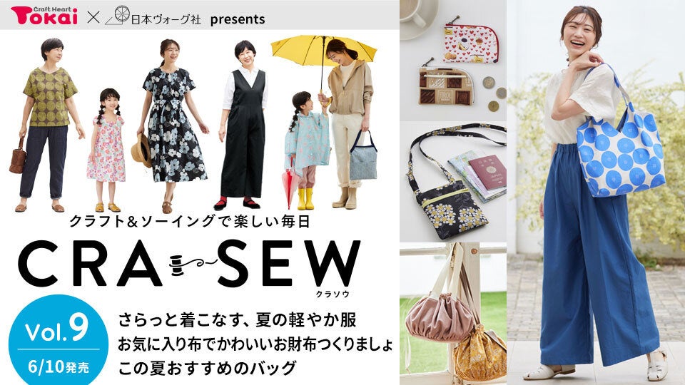 手づくり・ハンドメイドに関する事業を展開するジャパンクラフトホールディングスグループで、全国で手芸専門店「クラフトハートトーカイ」を展開する藤久株式会社(代表取締役社長:筒井 和宏)と、ハンドメイドに関する出版事業や教室事業を展開する株式会社日本ヴォーグ社(代表取締役社長:瀨戸 信昭)が共同企画したソーイングの定期購読誌「CRA-SEW(クラソウ)vol.9」を2024年6月10日に発売しました。