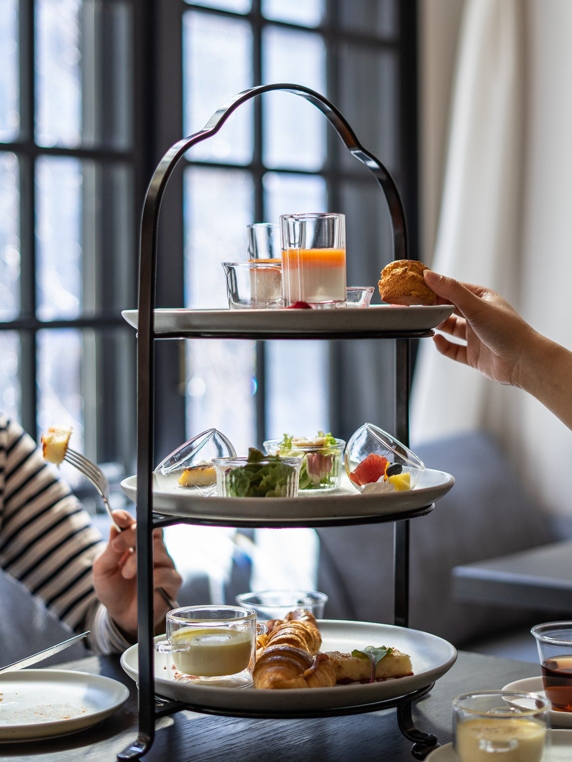 UNWIND HOTEL&BAR 小樽で大人気の「ハイティー」スタイルの朝食は、全国旅行支援対象のすべてのプランでお楽しみいただけます。ハイティースタンドは、ホットプレート、コールドプレート、スイーツプレートの3段から構成され、北海道食材を使用したバラエティー豊かなお料理を提供いたします。紅茶を中心とした選りすぐりのドリンクは、好きなだけお楽しみいただけるドリンクバースタイル。アール型のクラシックな窓からそそぐ朝日が気持ち良いレストラン「THE BALL」にて優雅な朝をお過ごしください。