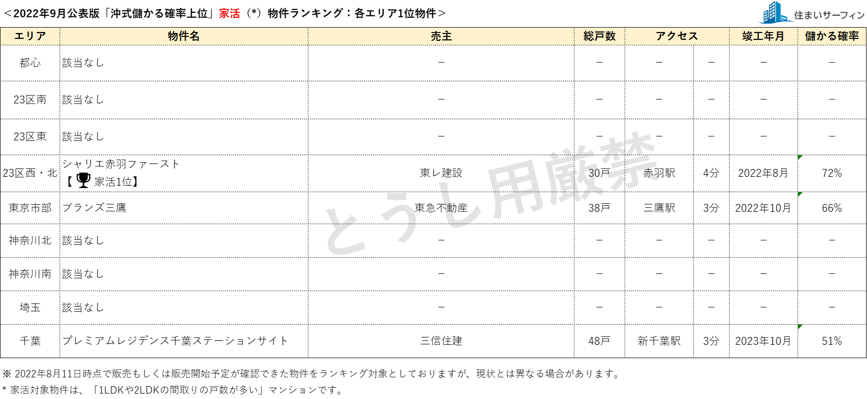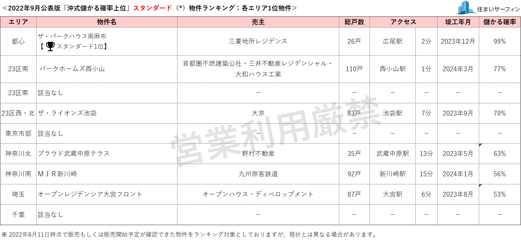 9月公表分は、2022年8月11日時点で販売もしくは販売予定が確認できた物件を対象としています。