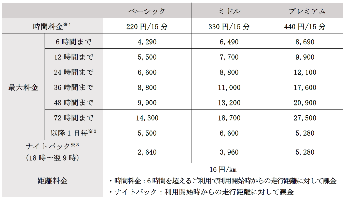詳細:https://share.timescar.jp/fare/use.html#minimum_charge