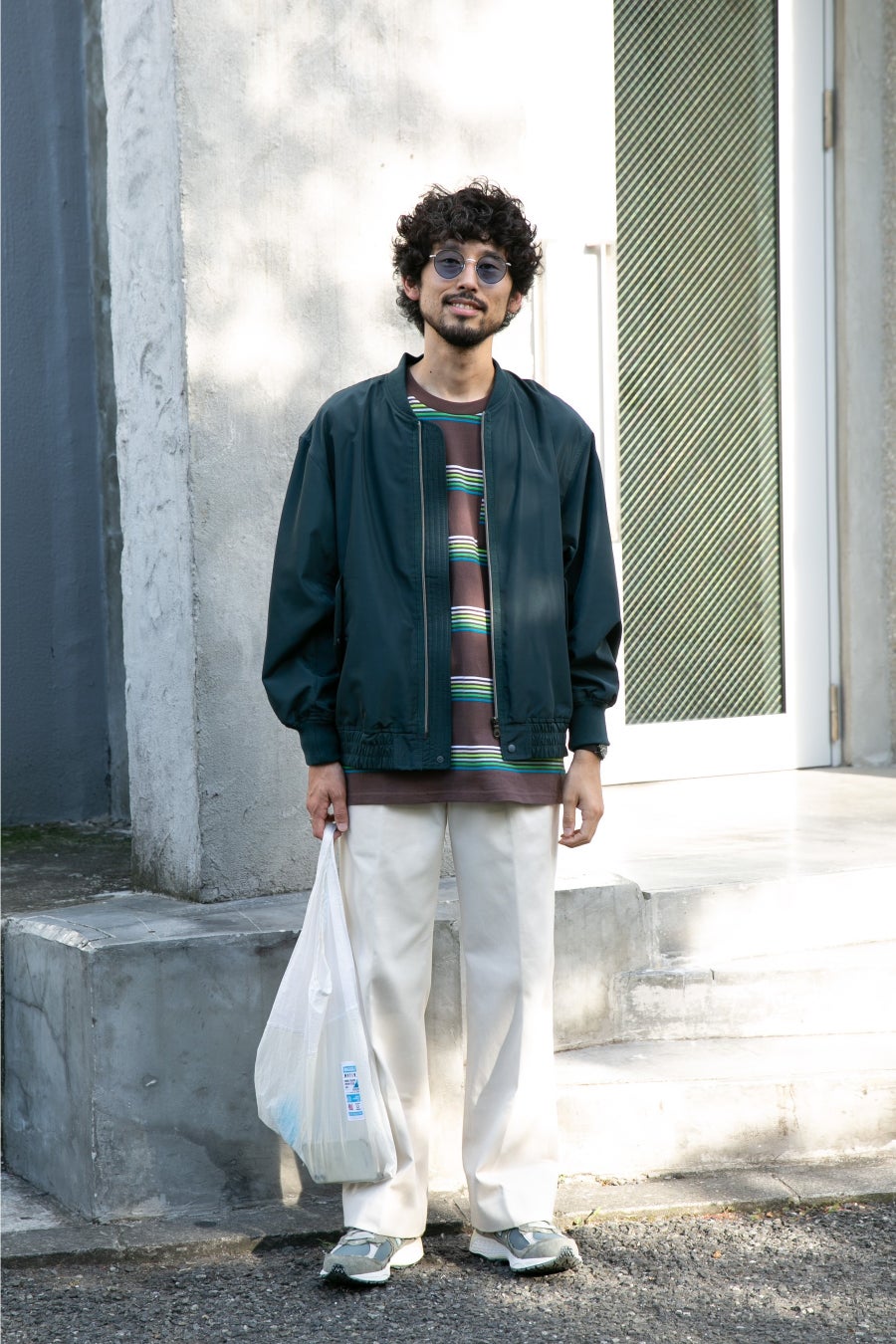 MA-1をベースに仕上げたボリューム感のあるバルーンシルエットのZIPブルゾン。ポリエステル100%で構成された高密度織物を使用。 糸軸にセミダル糸を使用することで、上品な光沢を付与し高級感を演出。これからの季節のコーディネートにアクセントをプラスするアイテムだ。