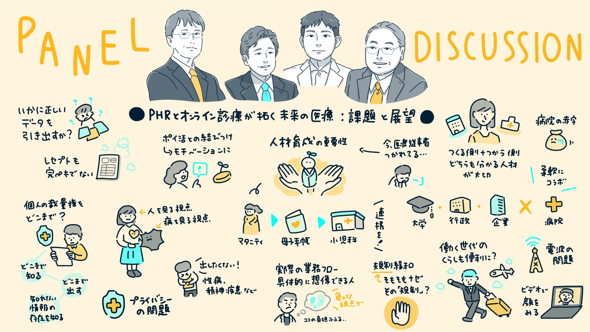 パネルディスカッションでは、企業、地方自治体、医療現場という三者の多角的な視点から、PHRとオンライン診療がもたらす可能性と課題について、実践的かつ建設的な意見交換が展開されました。