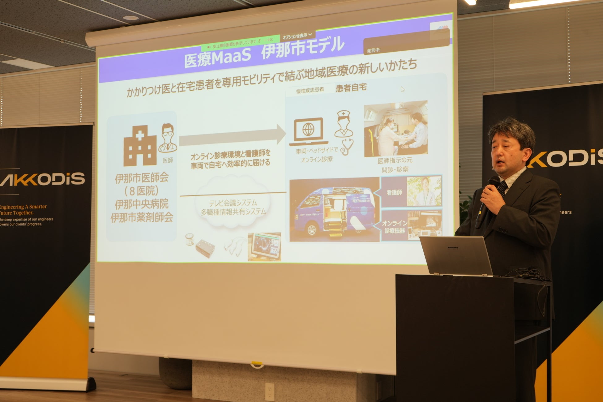 PHRによる医療情報の共有化と、医療MaaSという患者や患者家族に寄り添ったサービスの組み合わせにより、今後さらに全国各地で導入が進むことが予想されます。また、オンライン診療時の技術的課題に対しては、医療提供側の技術開発だけでなく、音声聴取困難な方には骨伝導機器の導入など、利用者に寄り添った技術開発を行い、継続的な改善が今後も必要になると説明しました。