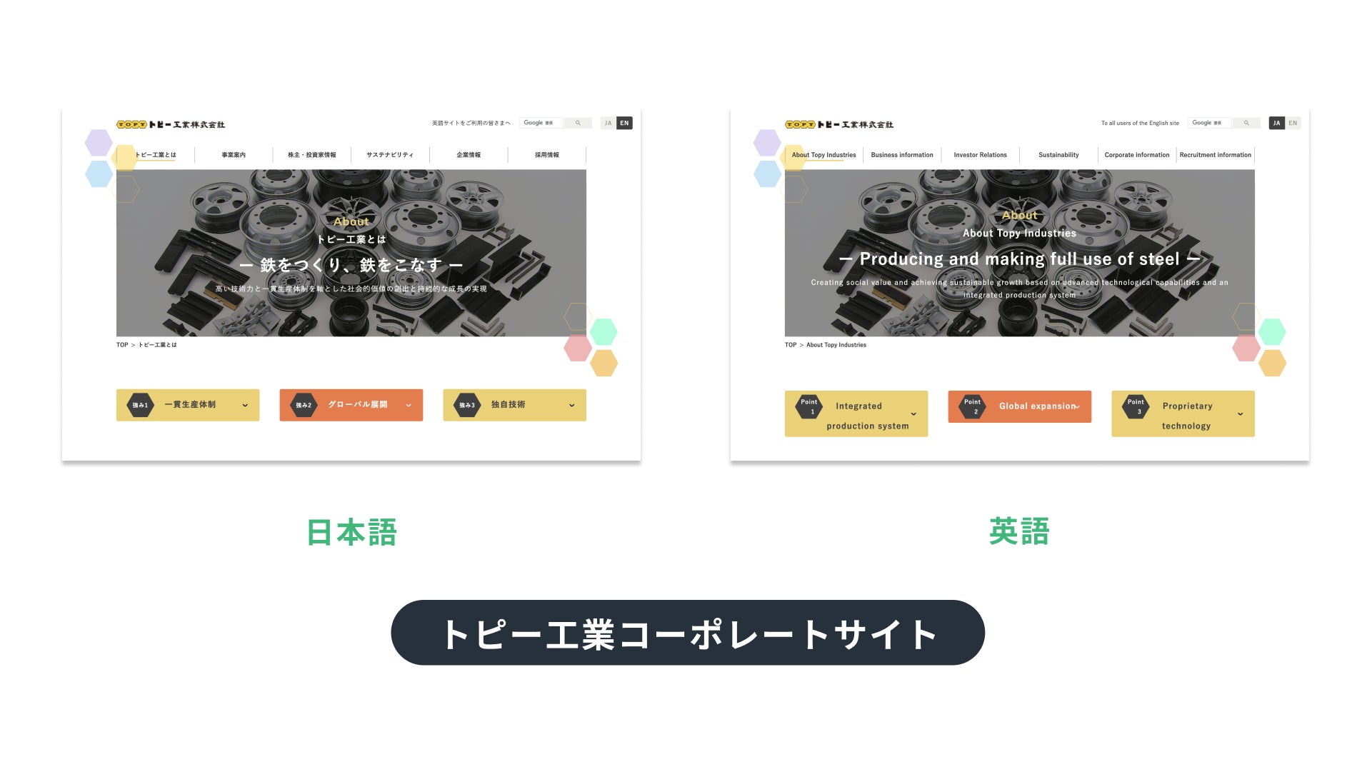 トピー工業のコーポレートサイトを日本語と英語で公開しています。