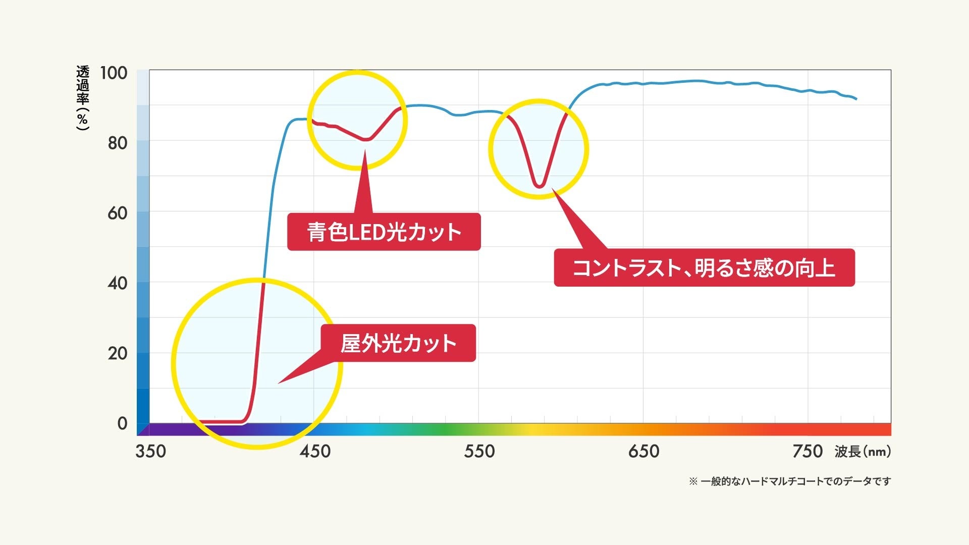 「トライガード」の大きな特徴は、紫外線・ブルーライト・イエローライトの3つの波長をコントロールすること。
