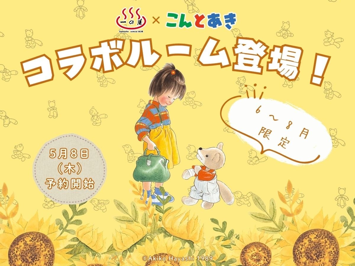 箱根を中心に温泉宿を展開する株式会社一の湯(本社:神奈川県足柄下郡箱根町、代表取締役:小川尊也)は、2025年6月に創業395周年を迎えるにあたり、感謝の気持ちを込めた特別企画を展開中です。その第二弾として、ベストセラー絵本『こんとあき』(作:林明子/刊行:福音館書店)とのコラボレーションルームを、「陽だまり一の湯」(神奈川県箱根町)と「カミツレの宿 八寿恵荘」(長野県池田町)にて、期間限定で販売いたします。
