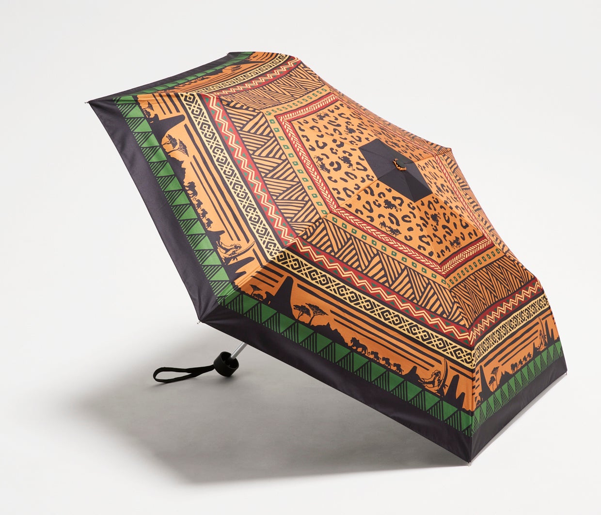 サバンナの風景を描いたエスニック柄が魅力的な折りたたみ傘です。便利な晴雨兼用タイプで1級遮光生地を使用しているため、気になる紫外線をカットし、遮熱効果にも期待。コンパクトに折りたため、持ち運びに便利です。