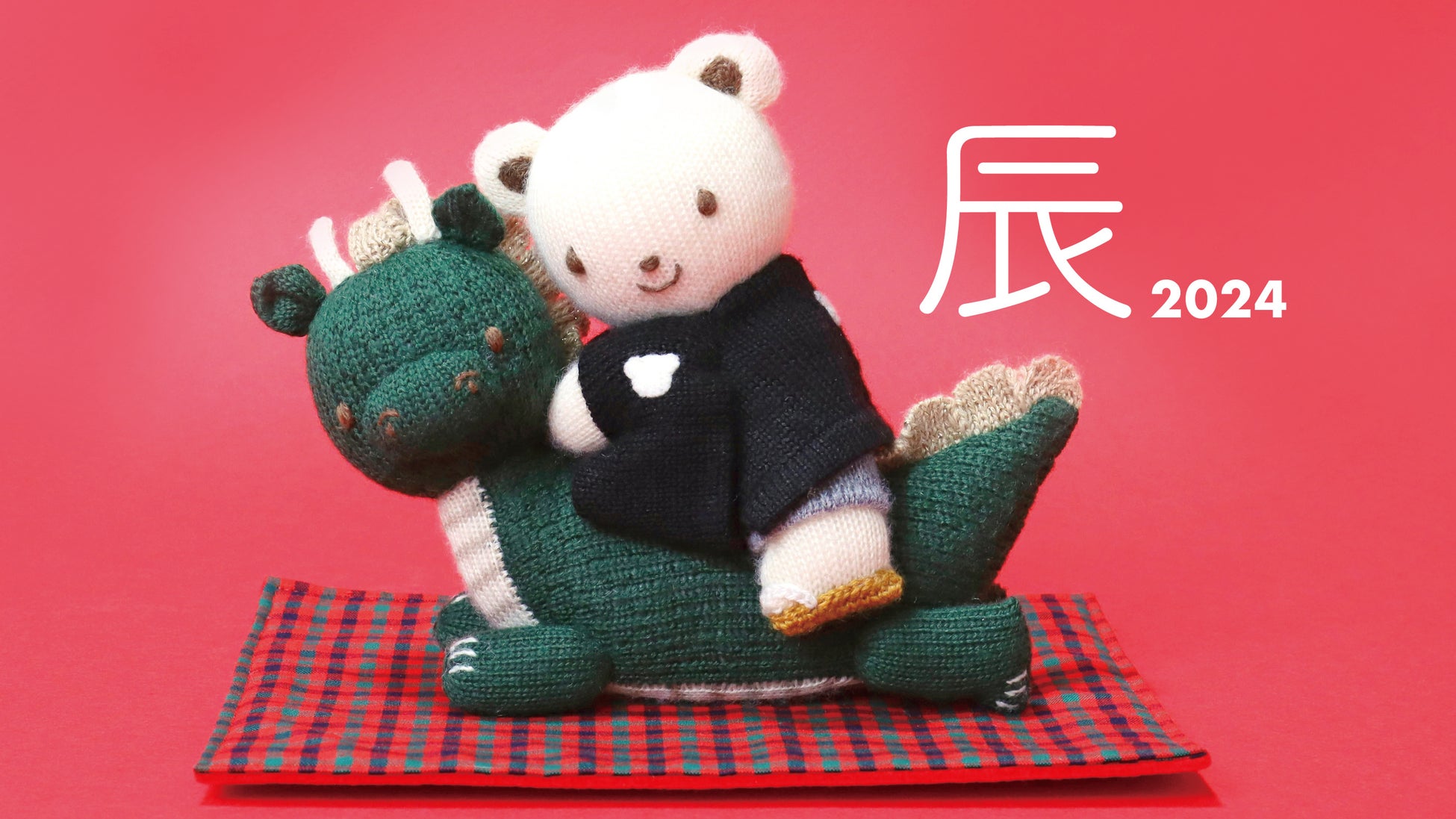 2024年の干支「辰」に乗ったファミちゃんの干支飾りが新登場。お正月らしい和装のあみぐるみファミちゃんがポイントです。最も格が高い正礼装の「黒五つ紋付羽織袴」を着用しており、敷物には赤系ファミリアチェックを使用。お正月の華やかな雰囲気にぴったりです。小さめのサイズで玄関やリビングなどに飾っていただけます。