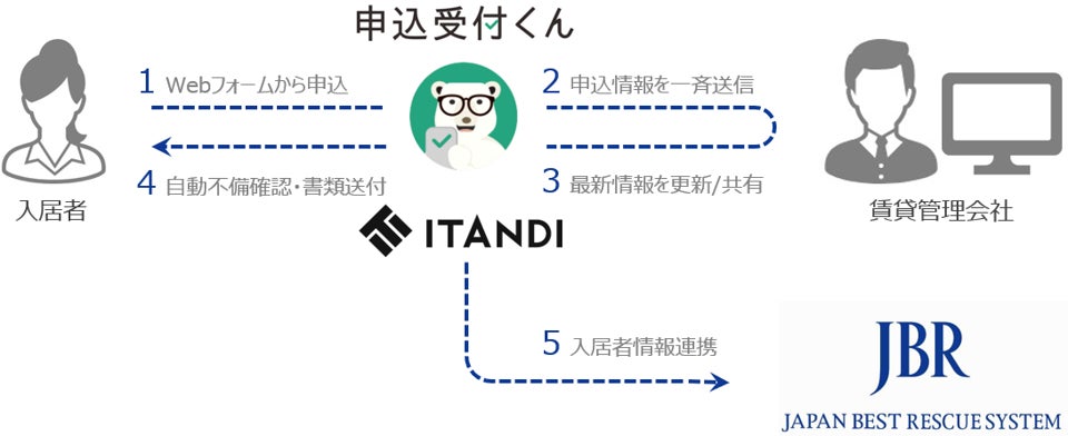 この度、イタンジとJBRは提携し、2023年12月より、イタンジが提供する不動産関連WEB入居申込システム「申込受付くん」を通じて、JBRが提供する24時間駆けつけサービス「安心入居サポート」の提供を開始します。