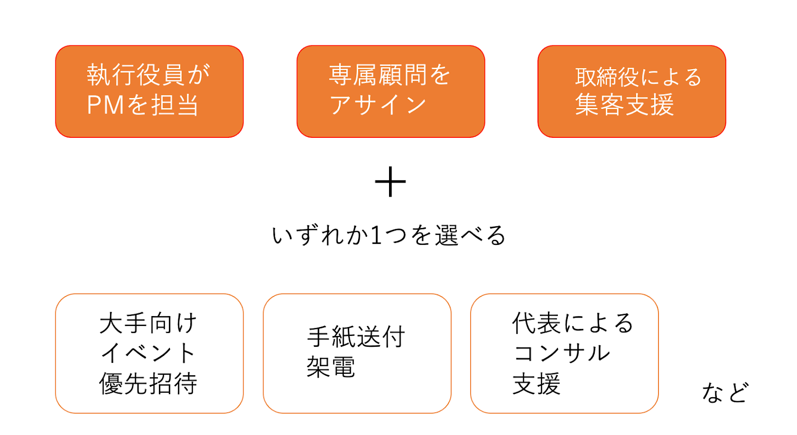 そうした企業のコロナ後の成長実現を支援するために代表〜執行役員が担当者としてジョインし、大手・成長企業マッチング等を直接支援する月1社限定プランをリリースいたします。