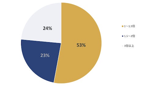 「1~1.5倍」が53%、「1.5~2倍」が23%、「3倍以上」が24%という結果となった。