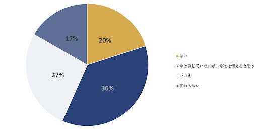 56%が増えた・今後増えると思うと感じている一方で、27%が感じていない、17%が変わらないと回答した。