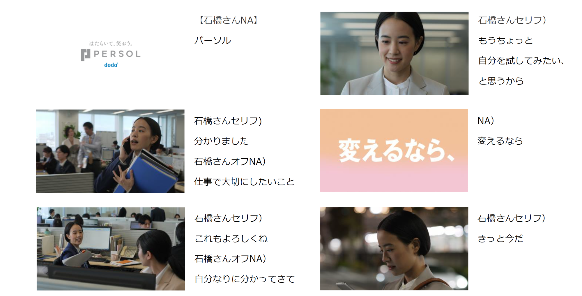 ~表現力に定評のある石橋 静河さんが、転職希望者の心情変化を表情豊かに演じる「変えるなら、きっと今だ。」篇⑥を4月8日(金)より放映~