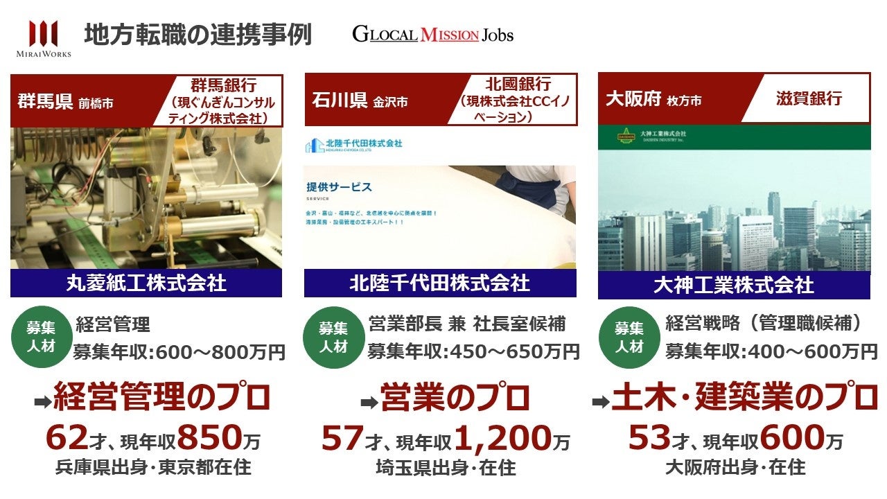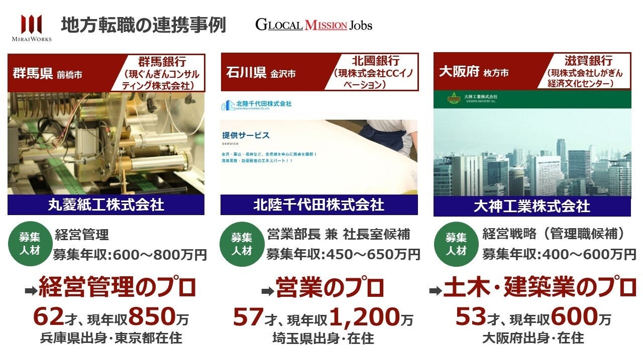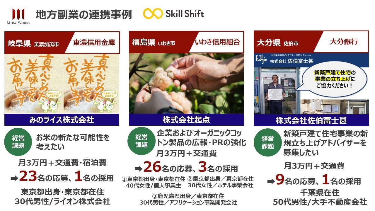 今後も、金融機関と連携し、地方企業と都市部のプロフェッショナル人材との副業マッチング、幹部人材・事業承継者候補として、正社員採用の支援を推進することで、地方中小企業の人材課題解決に努め、日本経済活性化に貢献して参ります。