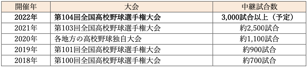 2022年の「バーチャル高校野球」では、KDDIの協力のもと、3,000試合以上の地方大会ライブ中継を予定しています。全49地方大会で準決勝以降の試合をお届けします。